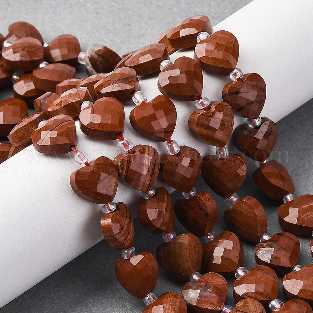Натуральные красные яшмы бусы пряди, граненое сердце, с бисером