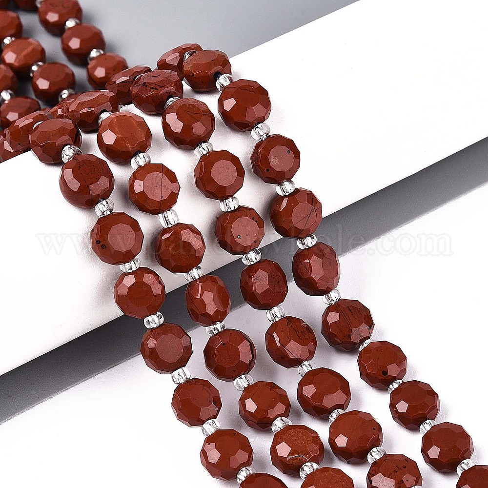 Натуральные красные яшмы бусы пряди, плоско-круглые, граненые, с бисером