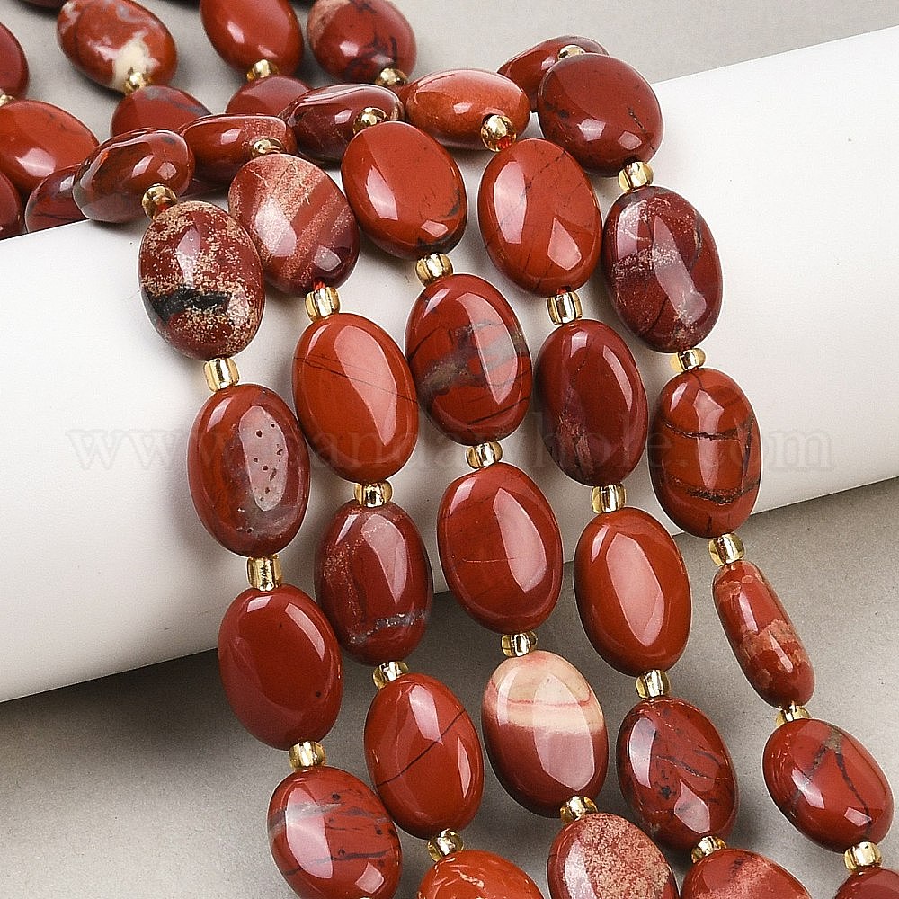 Натуральные красные яшмы бусы пряди, Плоско-овальные, с бисером