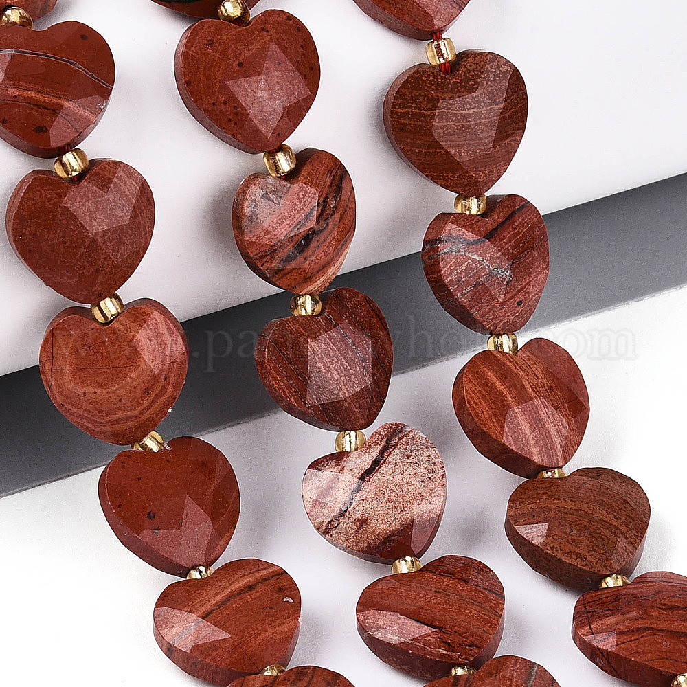 Натуральные красные яшмы бусы пряди, граненое сердце, с бисером