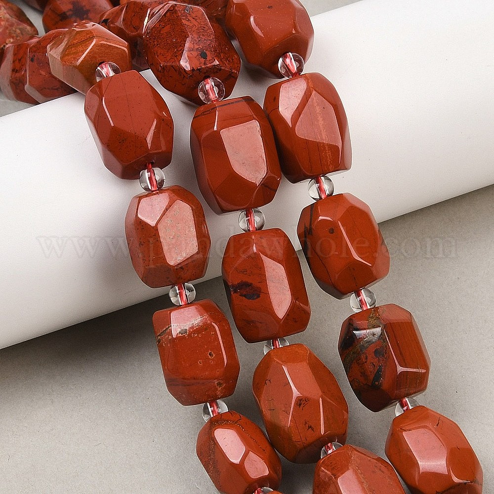 Натуральные красные яшмы бусы пряди, овальные, граненые, с бисером