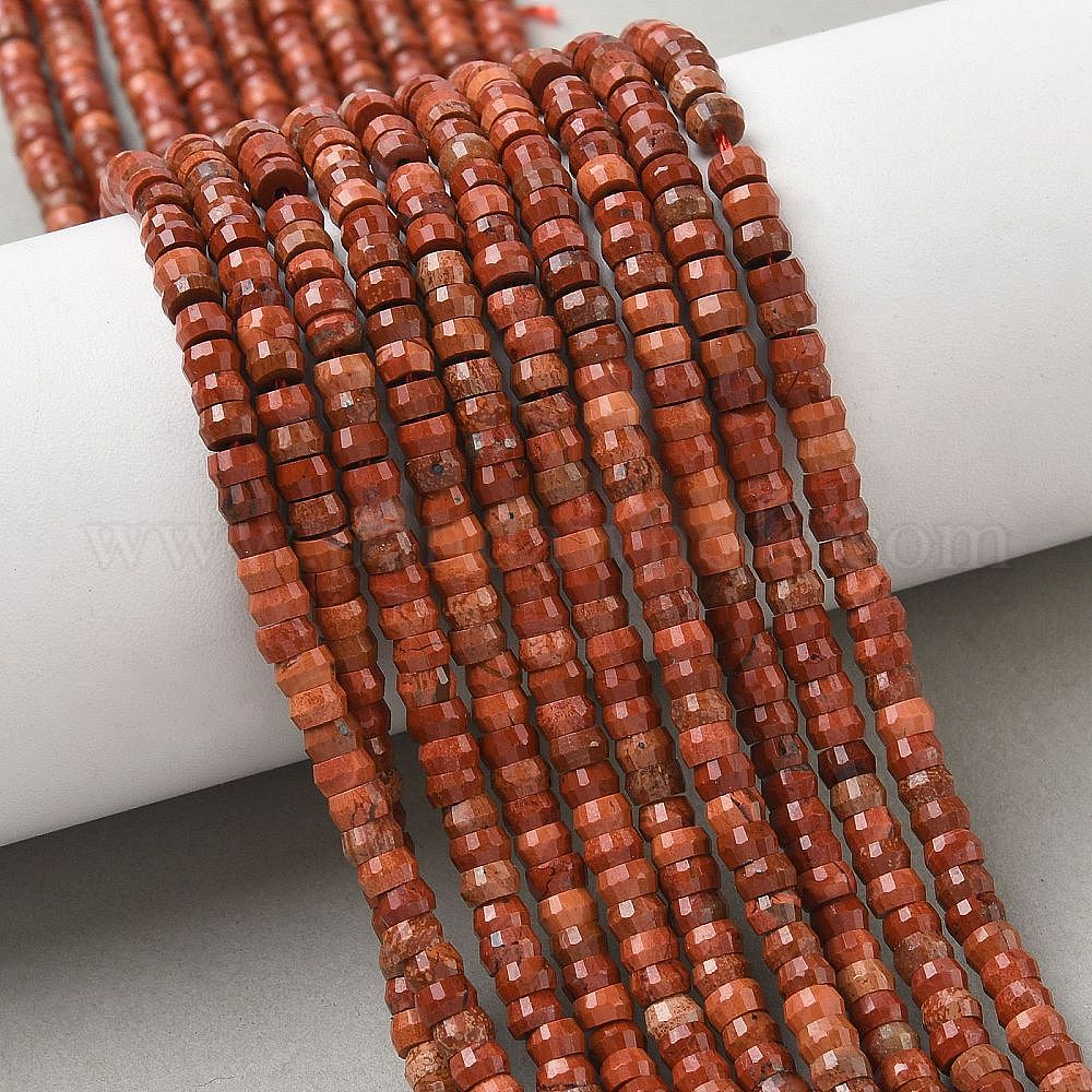 • Красный Камень Натуральные красные яшмы бусы пряди, граненые, шайба, 4x2.5 мм, отверстие : 0.9 мм, около 151~155 шт / нитка, 14.57''~14.96'' (37~38 см)