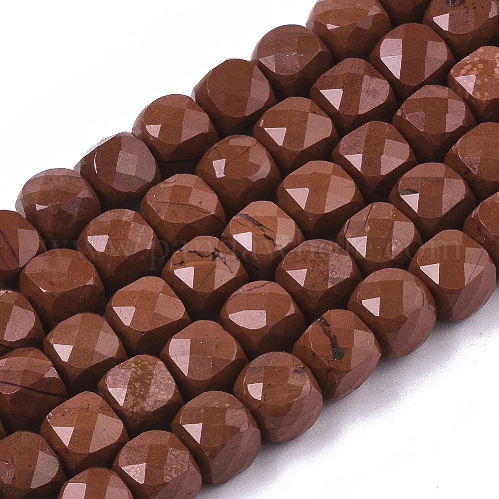 Натуральные красные яшмы бусы пряди, граненые, кубические