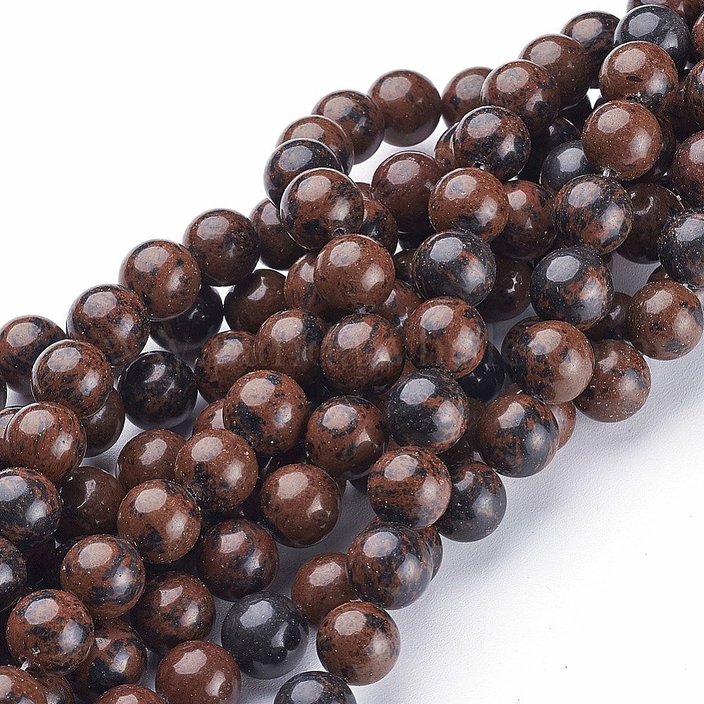 Натурального красного дерева обсидиана бисер нитей, круглые, 10~14 мм, отверстие : 1~1.2 мм