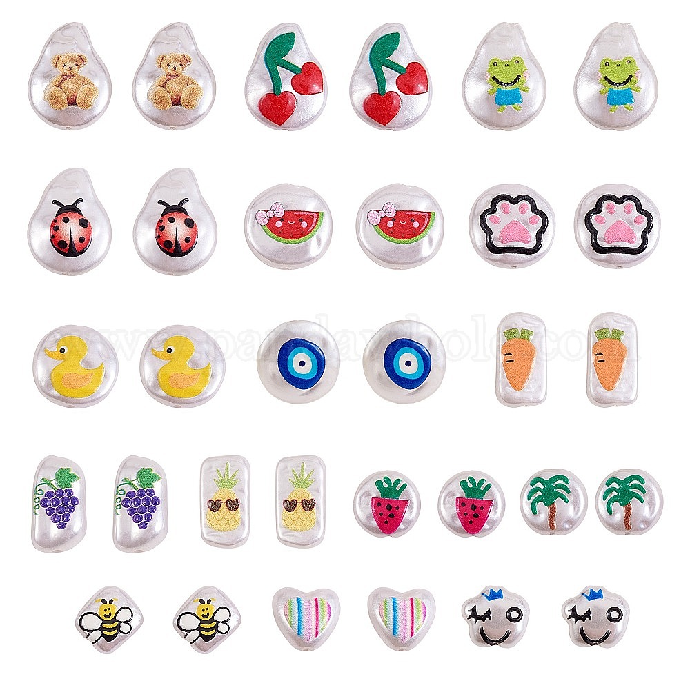 32 шт 16 стиль 3 d печатные бусины из абс-пластика имитация жемчуга, слеза с божьей коровкой и сердцем с отпечатком кошачьей лапы и злым глазом (02DW66)