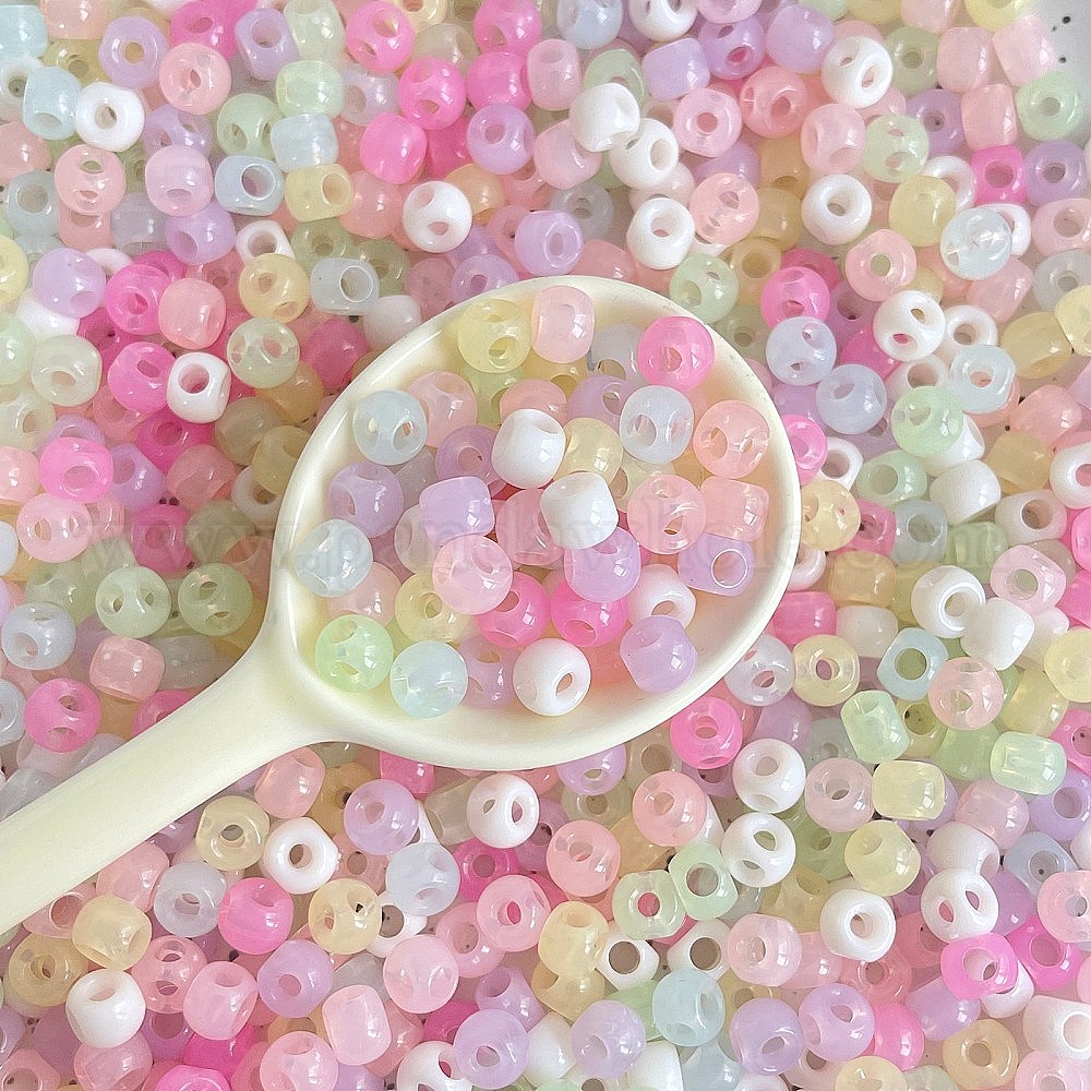 • (52) Непрозрачная лаванда Имитации акриловых шариков желе, барабан, бусины с четырьмя отверстиями, разноцветные, 8x5.8 мм, отверстие : 3.5 мм