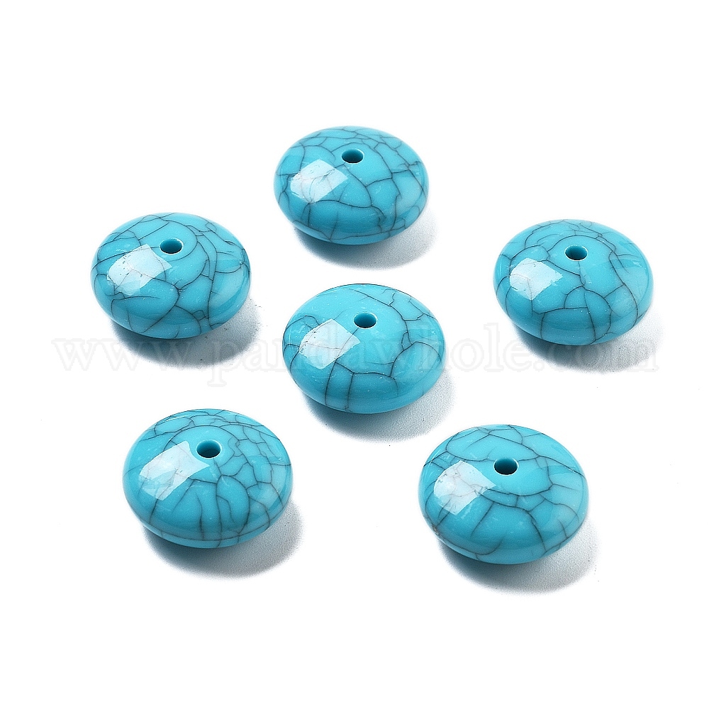 • Бирюза Акриловые бусины, имитация бирюзовых бусин, плоско-круглые, бирюзовые, 21x10 мм, отверстие : 3 мм, 173 шт / 500 г