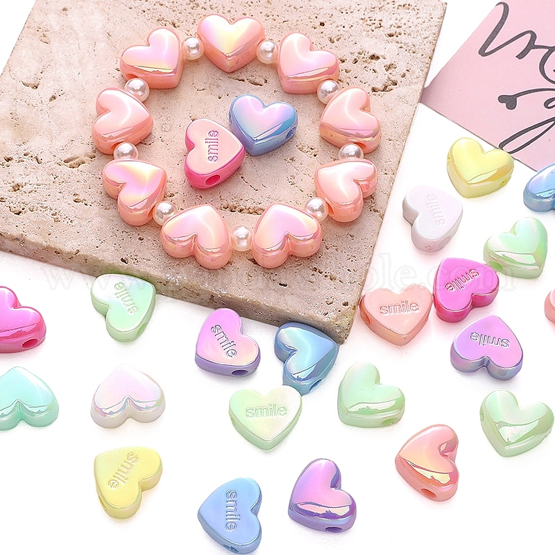 5 акриловые бусины, имитирующие жемчуг, сердце со словом улыбка, Перламутровые покрытием