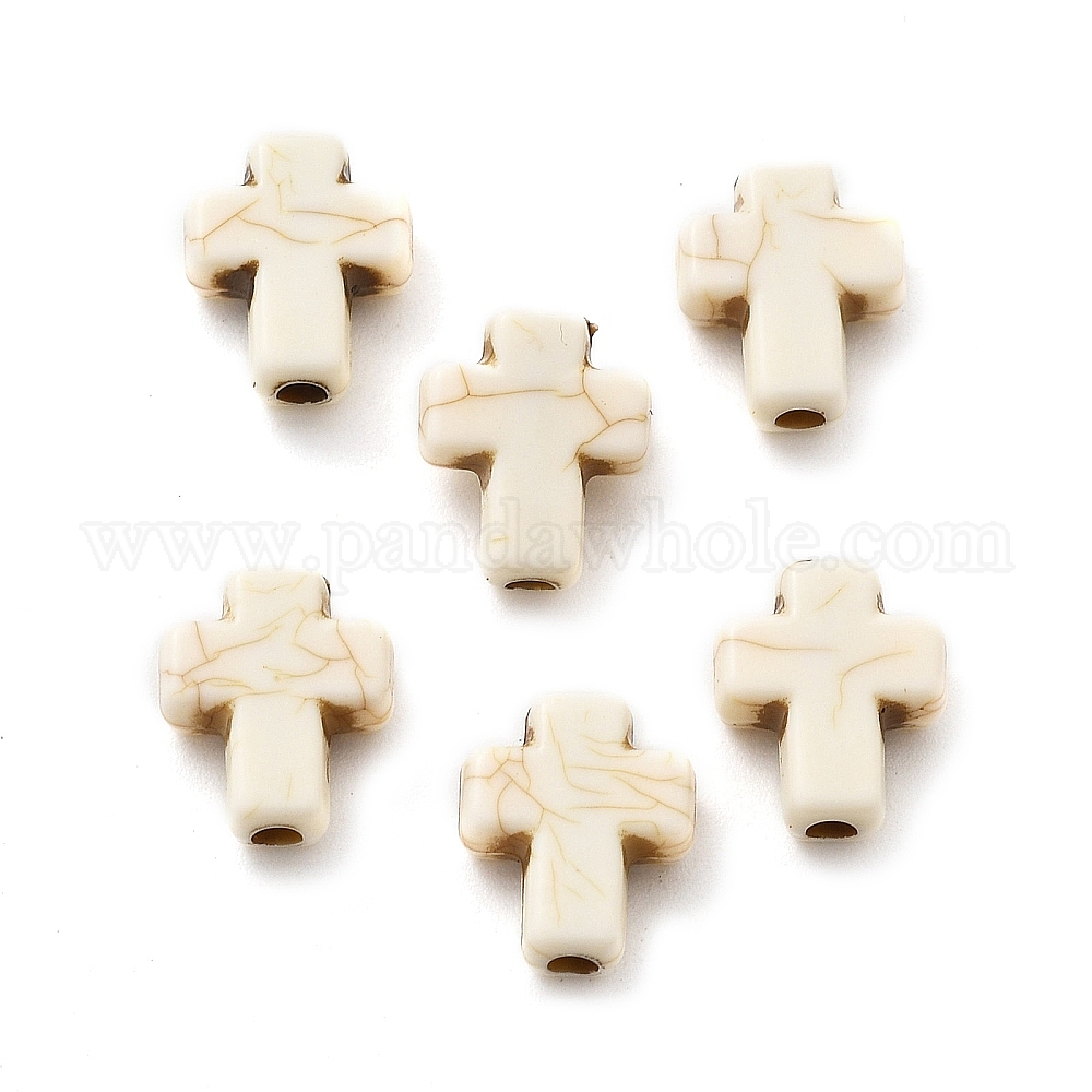 Хрустящие непрозрачные акриловые бусины, имитация бирюзовый, крестик