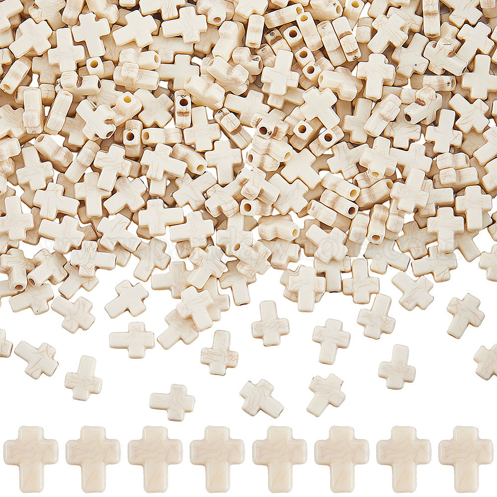 • Бланшированный Миндаль 1000шт. кракле непрозрачные акриловые бусины, имитация бирюзовый, крестик, бланшированный миндаль, 10x8x3.5 мм, отверстие : 1.6 мм