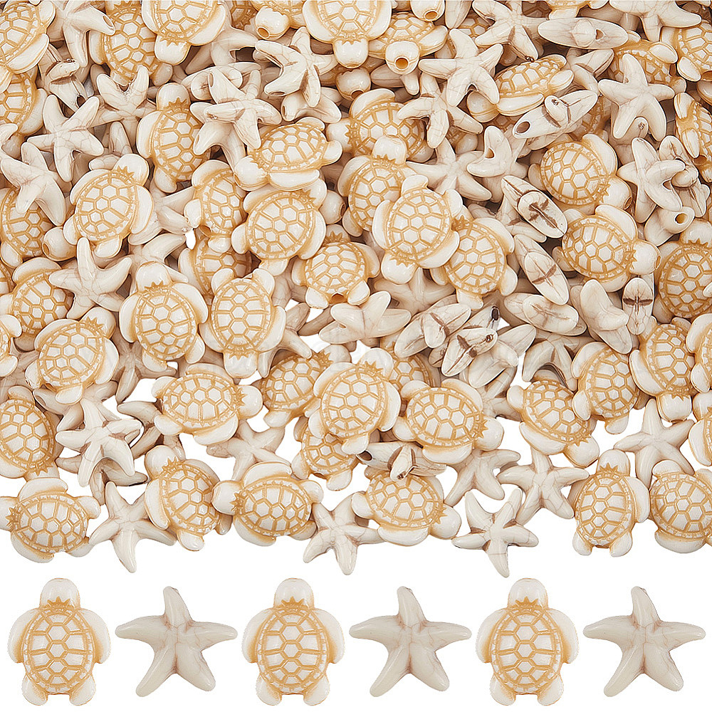400 шт. 2 стили акриловые бусины, имитирующие бирюзу, морская звезда-черепаха