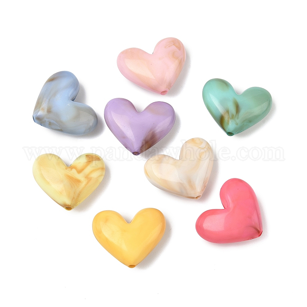 • (52) Непрозрачная лаванда Акриловые бусины, Стиль имитация драгоценных камней, сердце, разноцветные, 16.5x20x8.5 мм, отверстие : 1.6 мм, Около 347 шт / 500 г