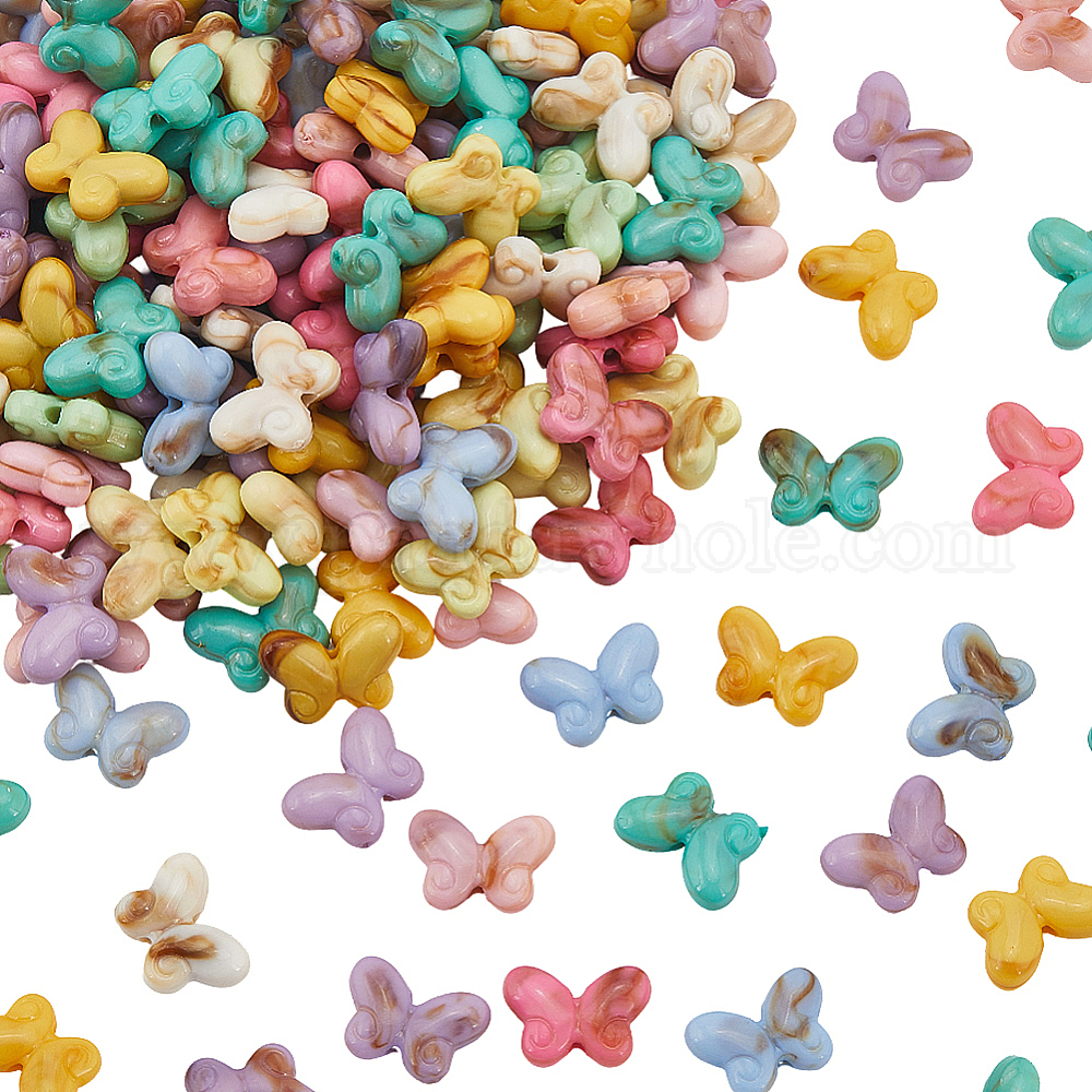 • (52) Непрозрачная лаванда 200шт акриловые бусины, Стиль имитация драгоценных камней, бабочка, разноцветные, 10.5x14.5x5.5 мм, отверстие : 1.8 мм