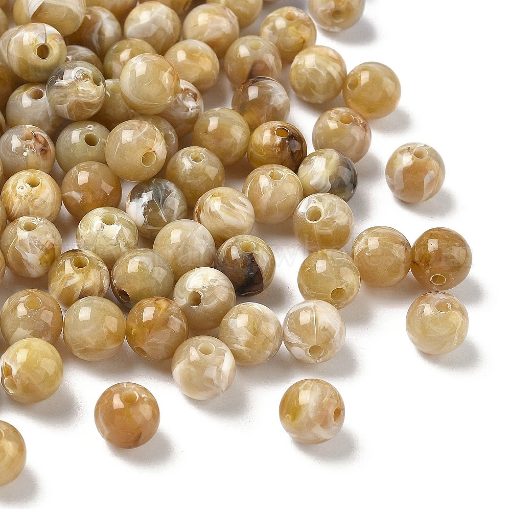 • Светло-коричневый Акриловые шарики Gemstone имитация, круглые, два тона, загар, 9.5~10 мм, отверстие : 2 мм, Около 909 шт / 500 г