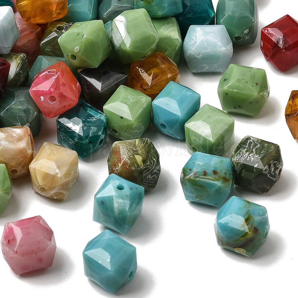 Непрозрачные акриловые бусины, имитирующие драгоценные камни, граненый стол, вырезанный куб