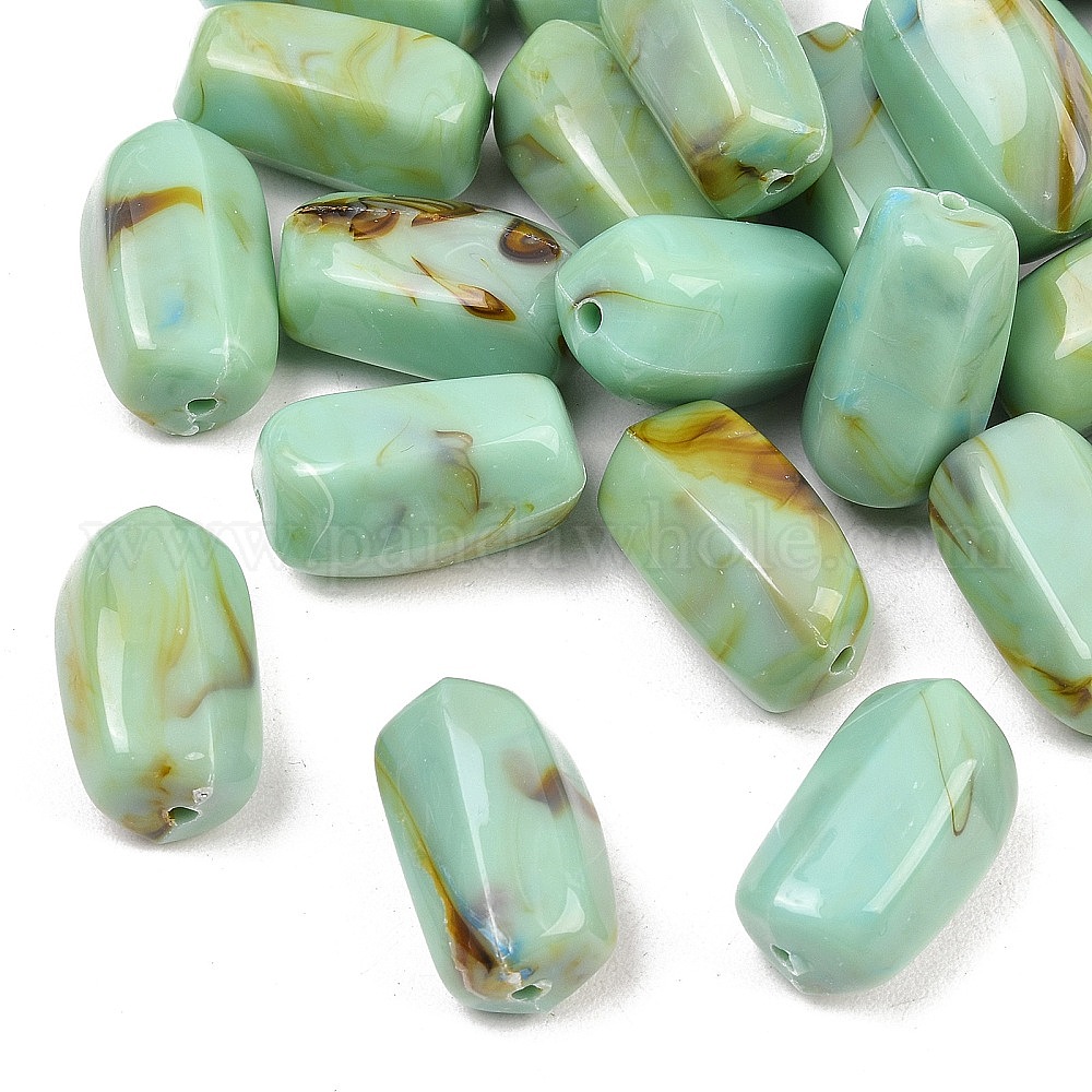 • Аквамарин Двухцветные непрозрачные акриловые бусины, имитирующие драгоценные камни, самородки, аквамарин, 24.5~25x14x15 мм, отверстие : 2 мм, Около 138 шт / 500 г