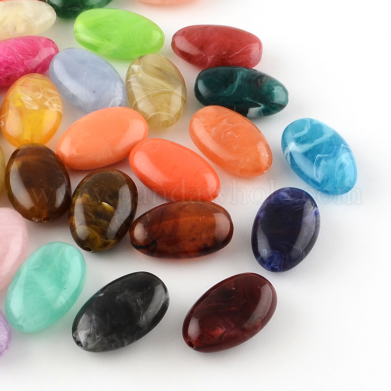 Овальной имитация драгоценных камней акриловые бусины, 30x19x11.5 мм, Отверстие : 2.5 мм , около 117 шт / 500 г