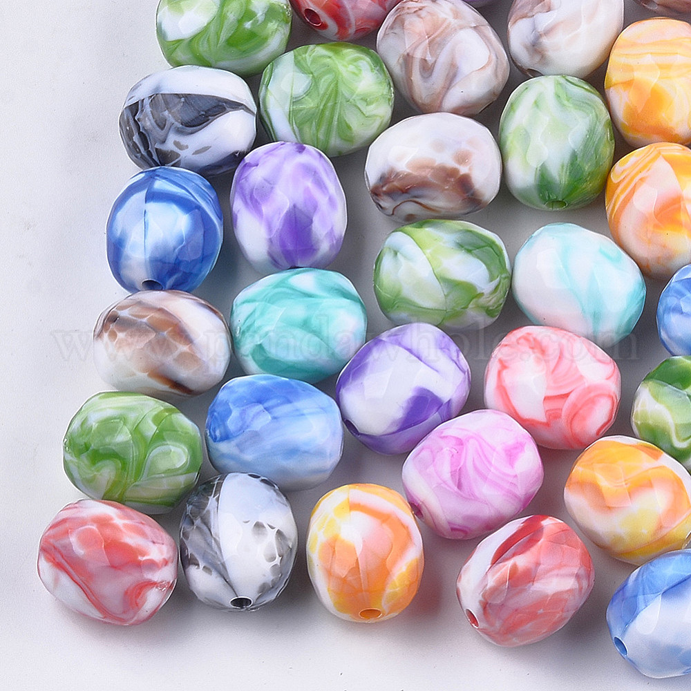 • (52) Непрозрачная лаванда Акриловые бусины, Стиль имитация драгоценных камней, два тона, граненые, овальные, разноцветные, 21.5x18x17.5 мм, Отверстие : 3 мм , около 110 шт / 500 г