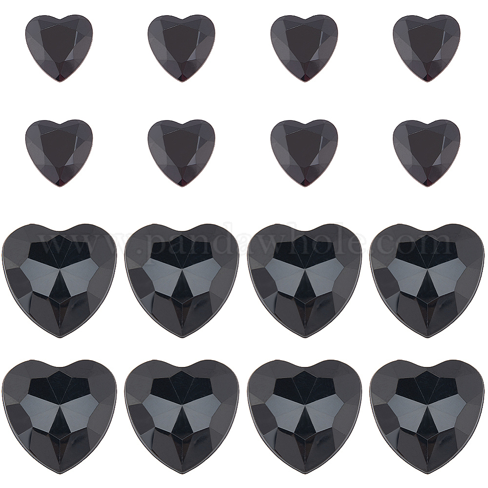 • Черный 200шт 2 стиль акриловые стразы кабошоны, плоская задняя и задняя, граненые, сердце, чёрные, 15~25x14.5~24x2~4 мм, 100 шт / стиль