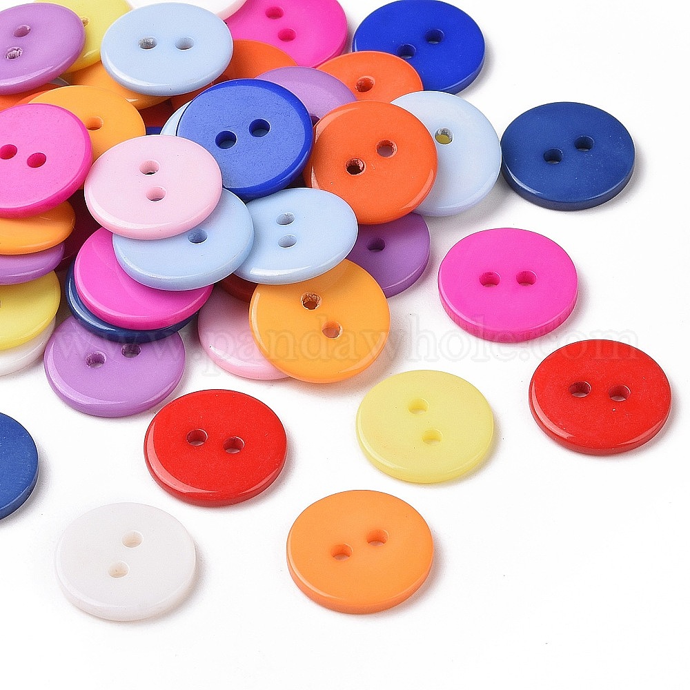 Акриловые кнопки рубашки, 2-луночное, окрашенные, плоско-круглые, 15x1.5 мм, отверстие : 2 мм
