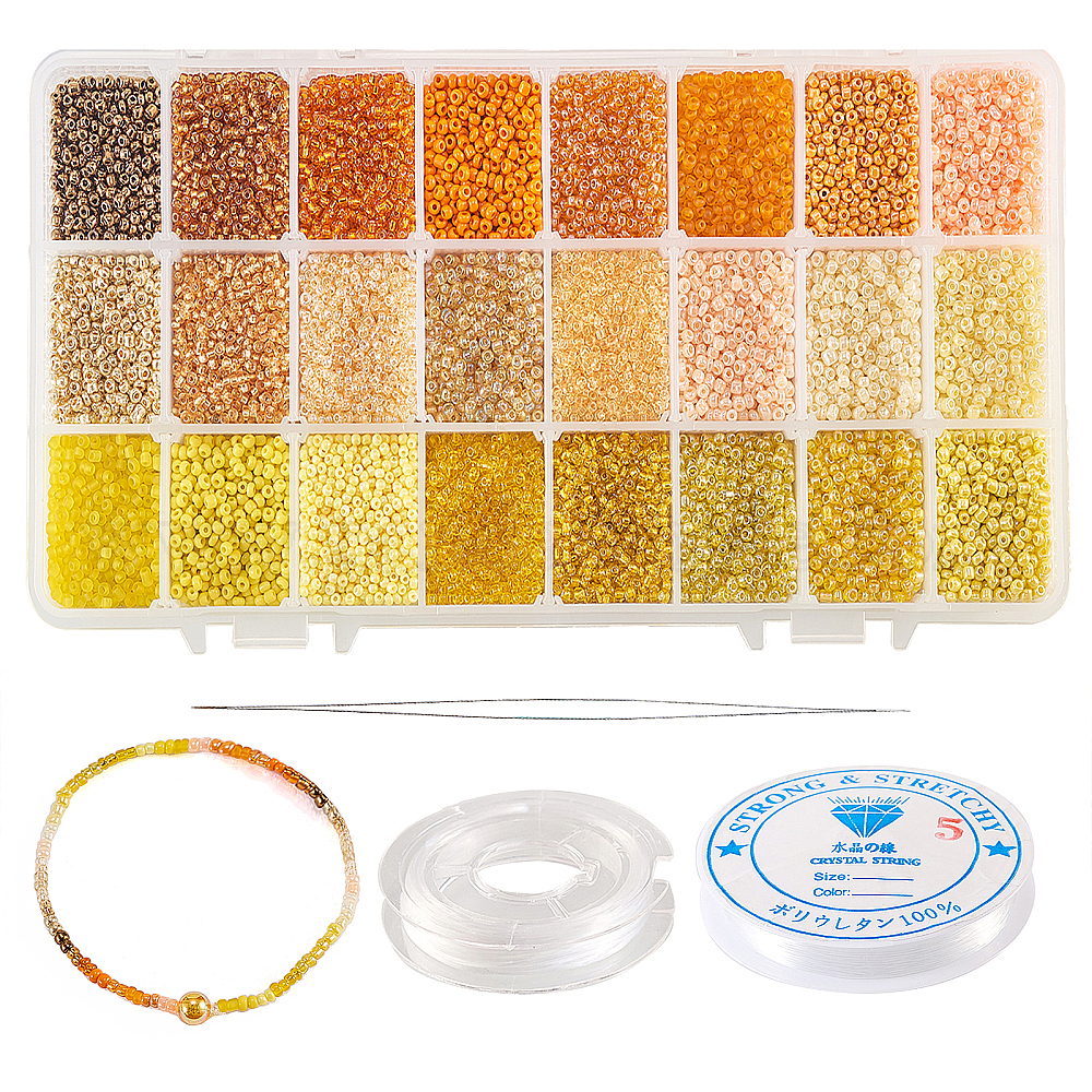 480 г 24 цвета 12/0 стеклянные круглые бусины, серебряная линия круглое отверстие, с 1 иглами для бисероплетения и 2 роликами эластичной хрустальной нити