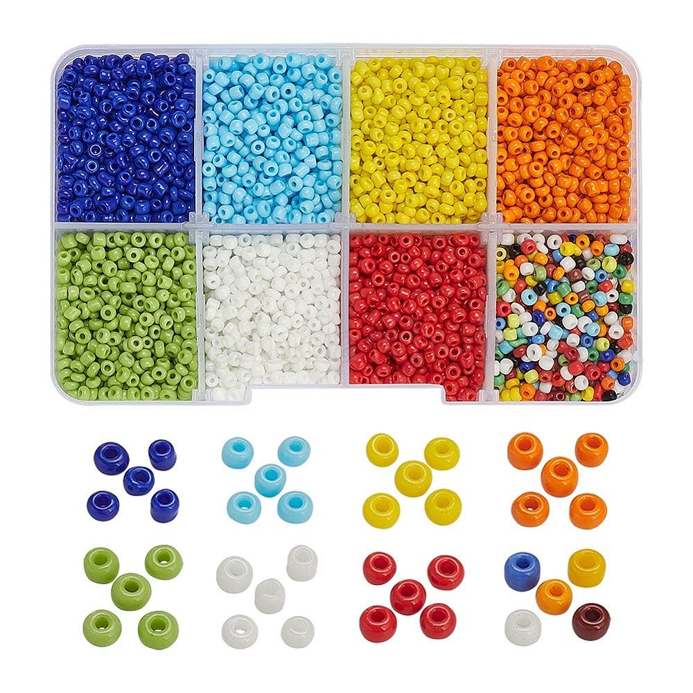 8 цветные стеклянные бусины, непрозрачные семян цветов, круглые