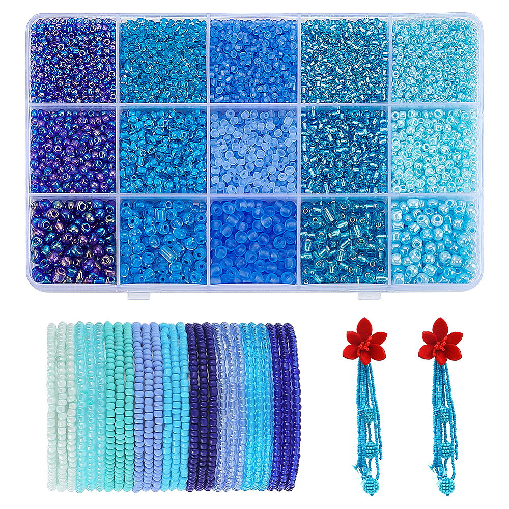 12/0 прозрачные стеклянные бусины, внутри цветов, круглое отверстие, круглый : 1.5~2 мм, отверстие : 1 мм, около 13г;