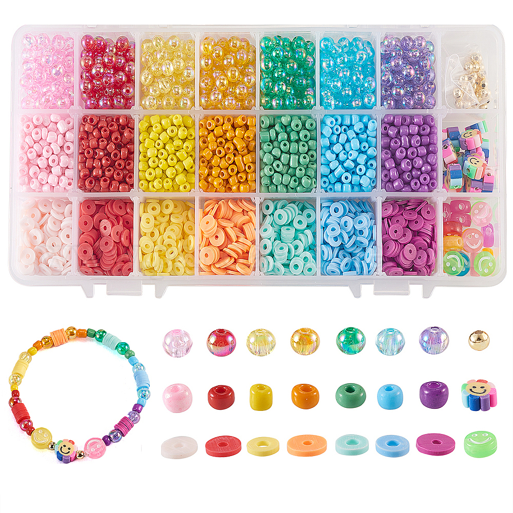 цветок с улыбкой в форме лица бусины из полимерной глины: 0.35~10.5x0.18 дюйм (9~10.5x4.5 мм), отверстие: 0.06 дюйм (1.6 мм), 20 шт;