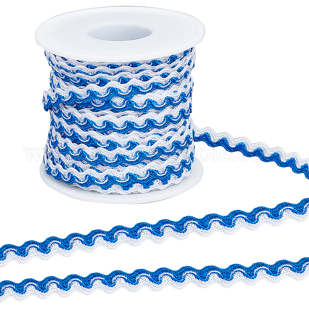 • Синий 16м полиэстеровая волнистая бахрома, двухцветная волнистая кружевная отделка, для шитья одежды и художественного оформления, белые, синие, 1/4 дюйм (7 мм), около (16 м) / рулон