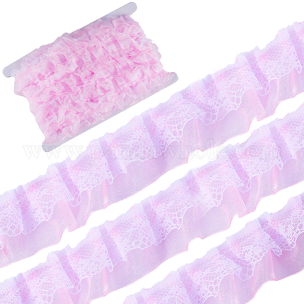 • Pink 12.5 ярдов двухслойной отделки из полиэстерового кружева, плиссированная лента, для аксессуаров для одежды, розовые, 1~1-1/8 дюйм (25~28 мм)