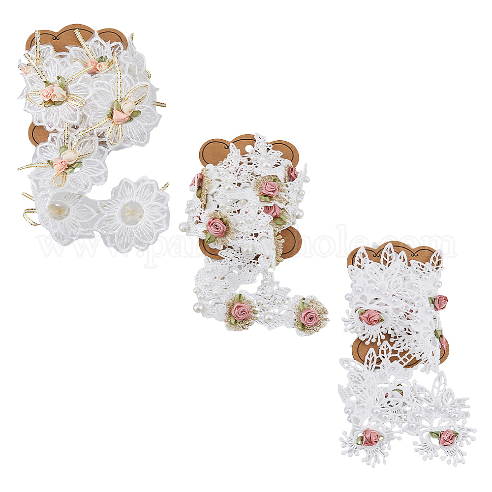 3 ярды 3 стили полиэстеровые цветочные кружевные ленты ручной работы, цветочная кружевная отделка, с пластиковой бисера, для аксессуаров для одежды