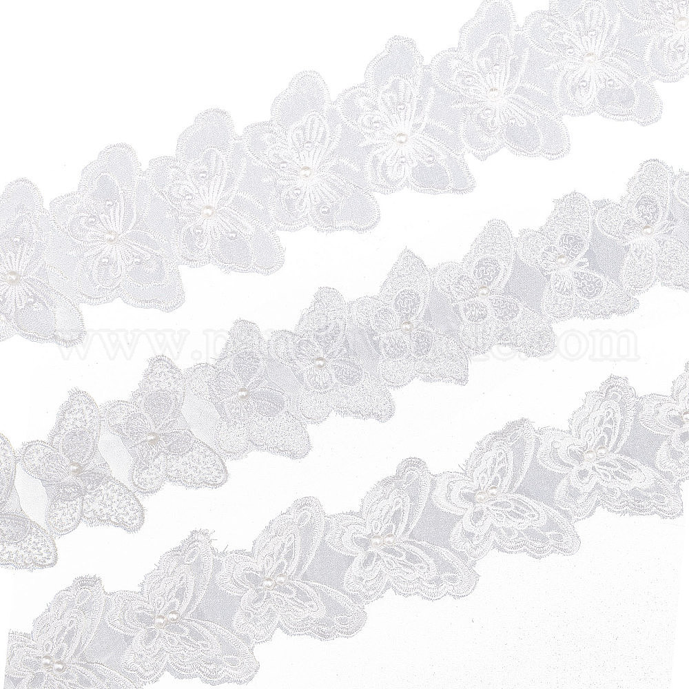 3 ярды 3 стили полиэстер вышивка бабочка кружевная отделка, с пластиковыми бусинами из искусственного жемчуга