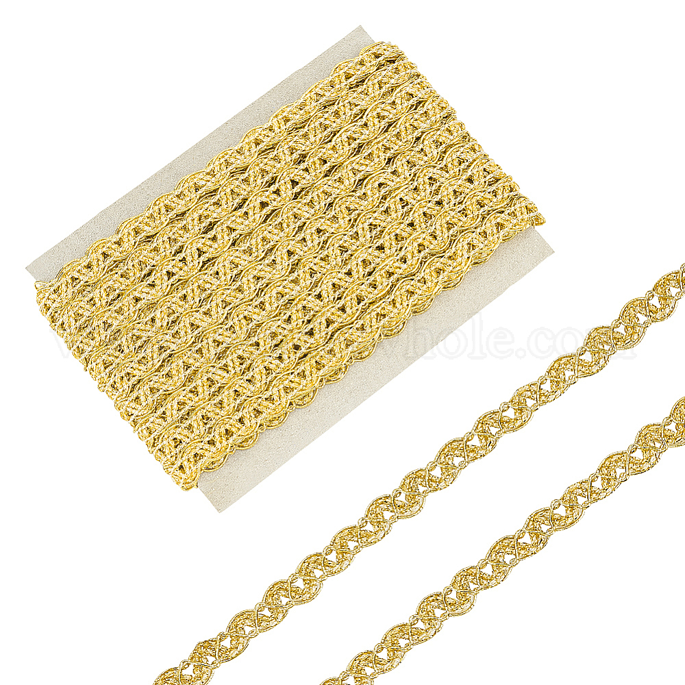 • Золотистый 10m полиэстеровая металлизированная плетеная кружевная отделка, для штор, украшение одежды, золотые, 3/8 дюйм (10 мм), около 10.94 ярдов (10 м) / карту