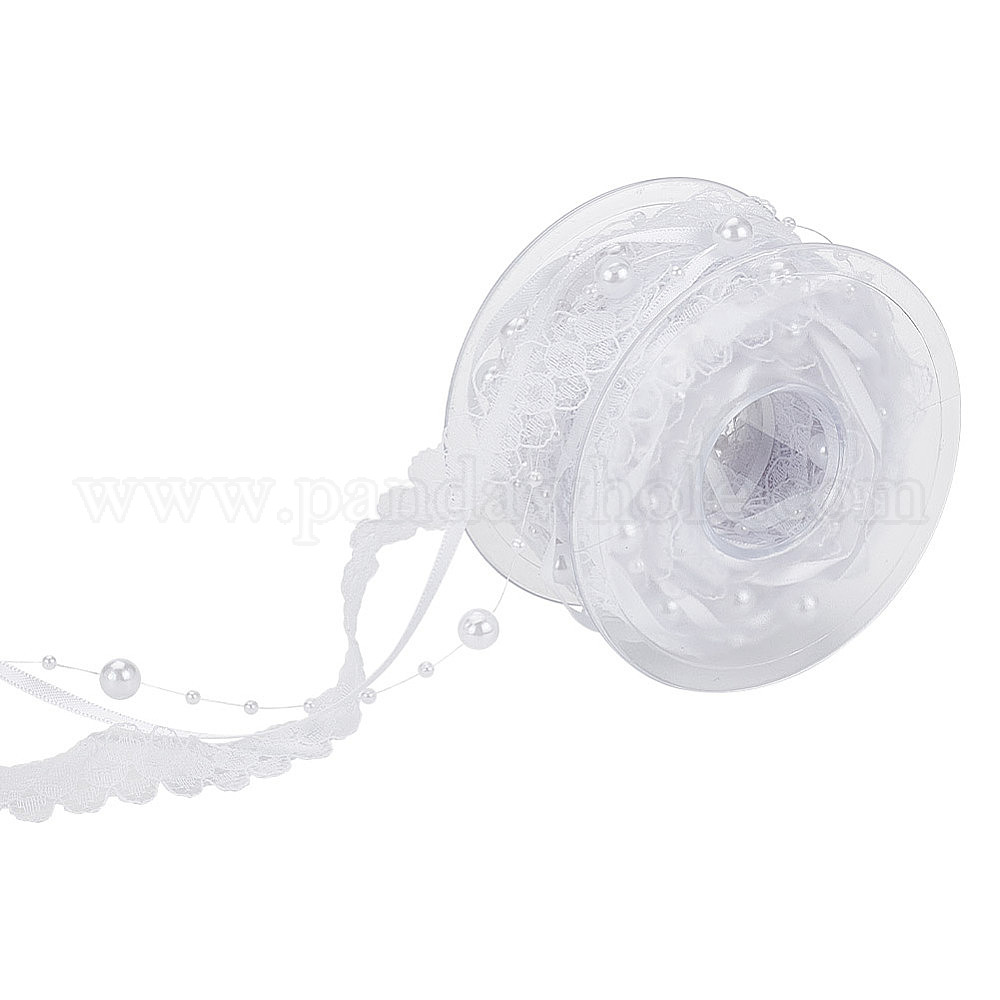 1 отделка из полиэфирного цветочного кружева, с отделкой бусинами из искусственного жемчуга, для украшения одежды