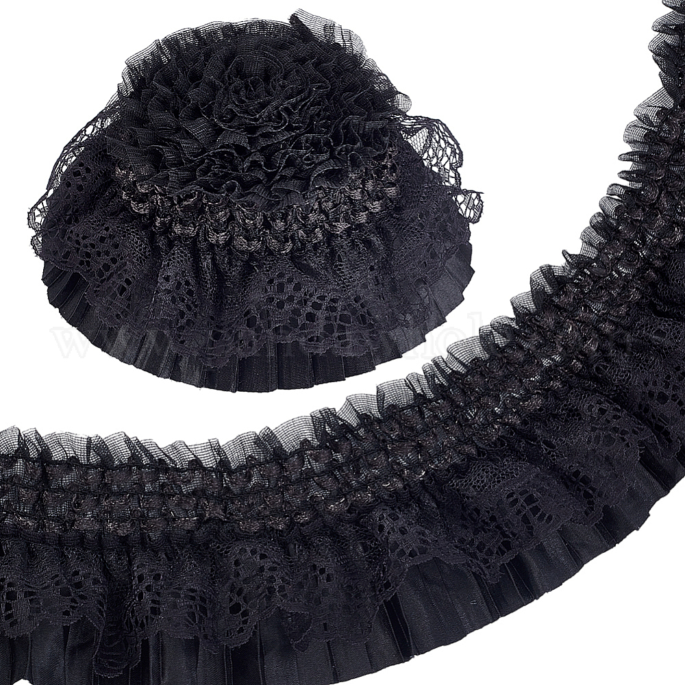 Полиэстеровая двухслойная плиссированная кружевная лента, кружевная отделка с волнистым краем, аксессуары для одежды
