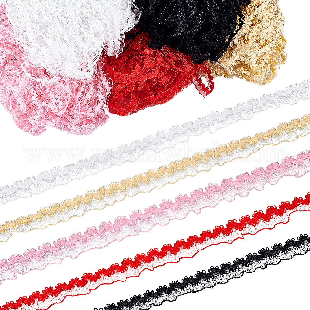 5 шт. 5 цветная полиэстеровая плиссированная эластичная кружевная лента, кружевная отделка с волнистым краем, аксессуары для одежды