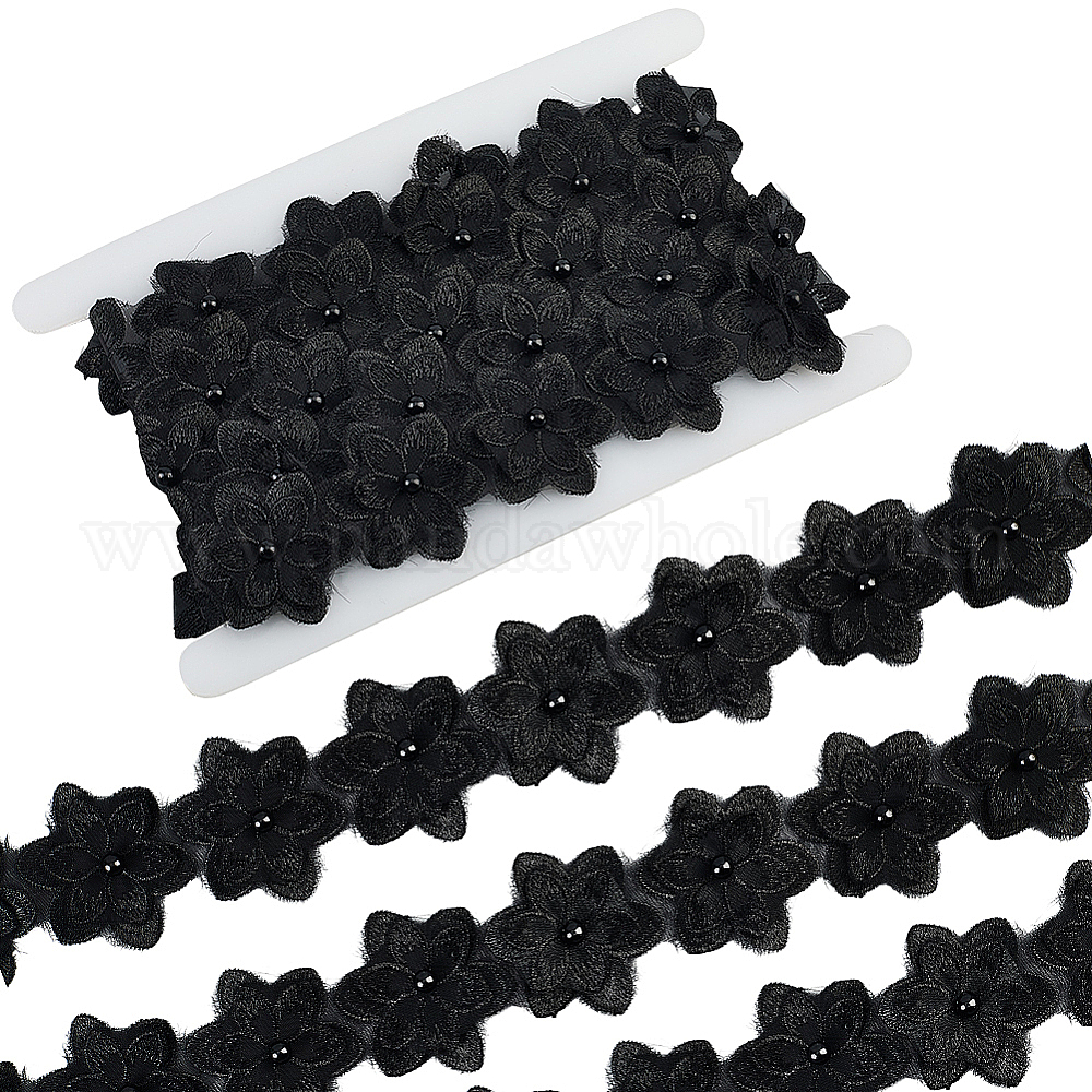• Черный 2 ярдов цветочной отделки из полиэстерового кружева, кружевные ленты с искусственным жемчугом для аксессуаров одежды, чёрные, 1-3/4 дюйм (45 мм)