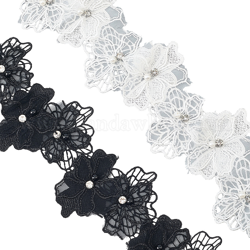 2 шт. 2 цветная двухслойная полиэстеровая кружевная лента с цветочным узором, со стразами