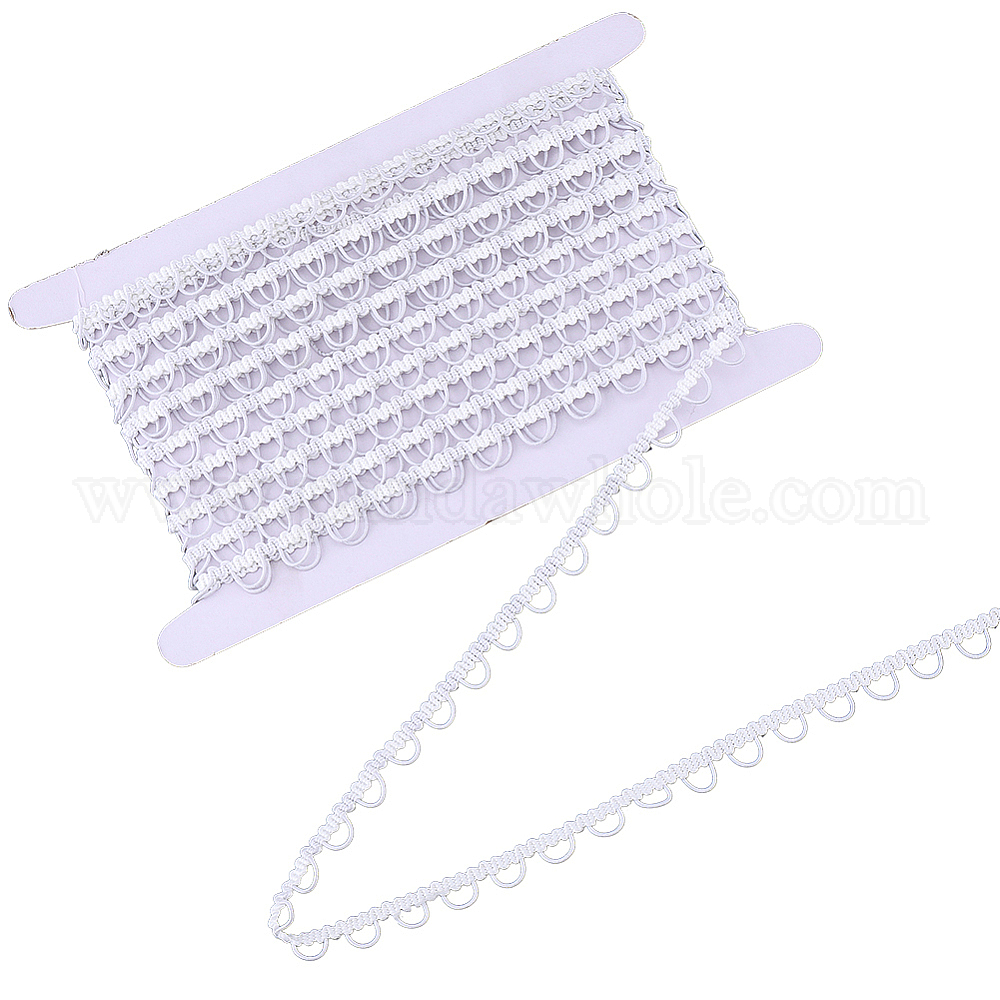 • Белый 10 ярдов полиэстеровой тесьмы с эластичными петлями для пуговиц, ленты для пуговиц для костюмированных рукоделий и шитья, белые, 3/8 дюйм (10 мм)