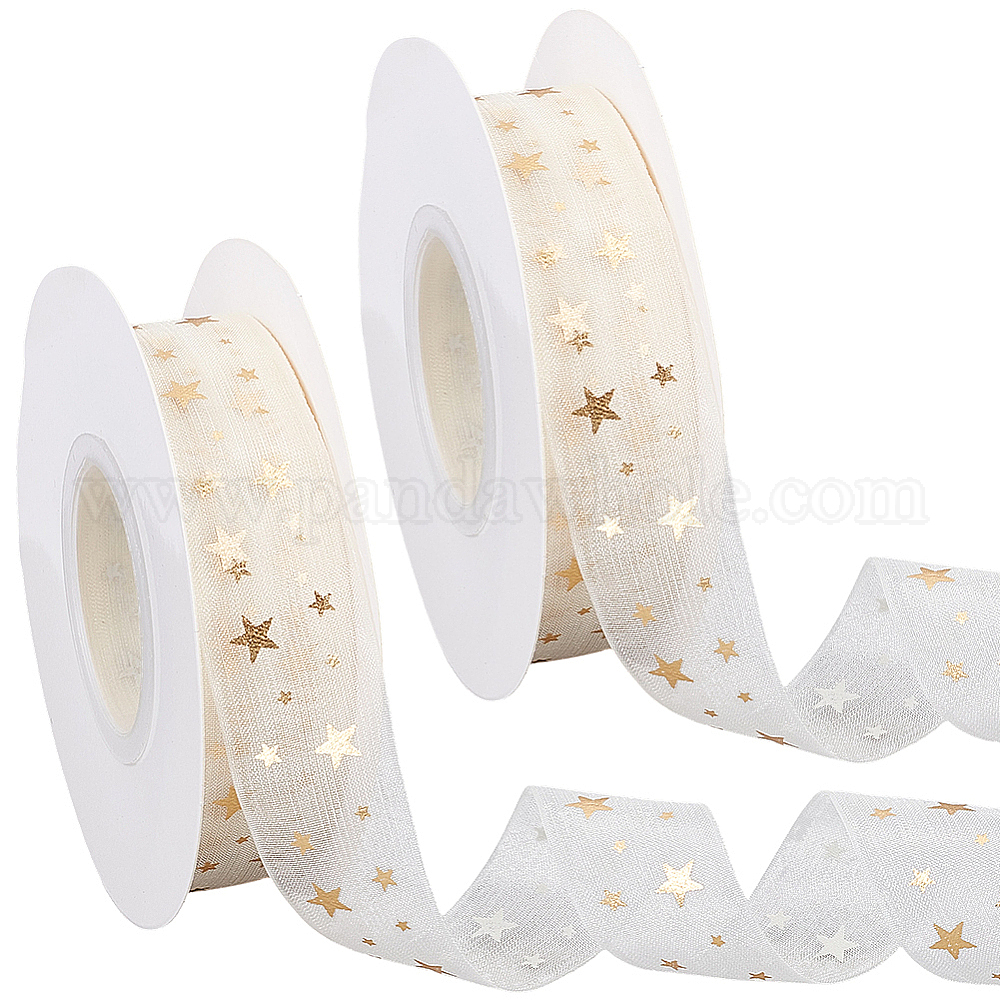 • Золотистый Полиэфирная лента, отделка кружевом со звездным узором, для подарочной упаковки, золотые, 3/4 дюйм (20 мм), около 25.00 ярдов (22.86 м) / рулон