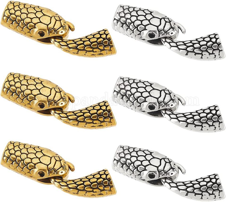 12 наборы 6 цвета застежки-крючки и S-образные крючки из сплава в тибетском стиле, змея
