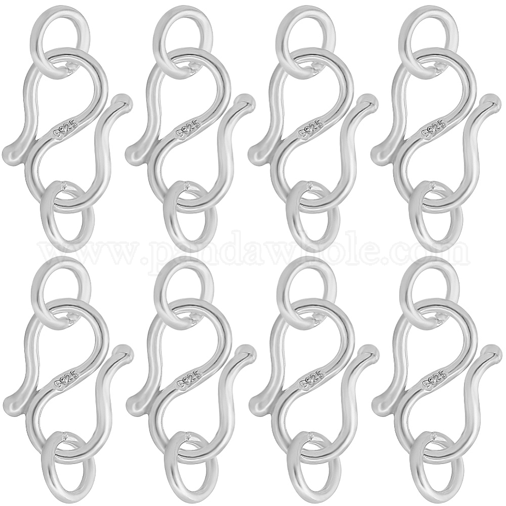 8 шт. 925 застежки в форме буквы S из стерлингового серебра, S-крючок застежки, с двойными прыжковыми кольцами