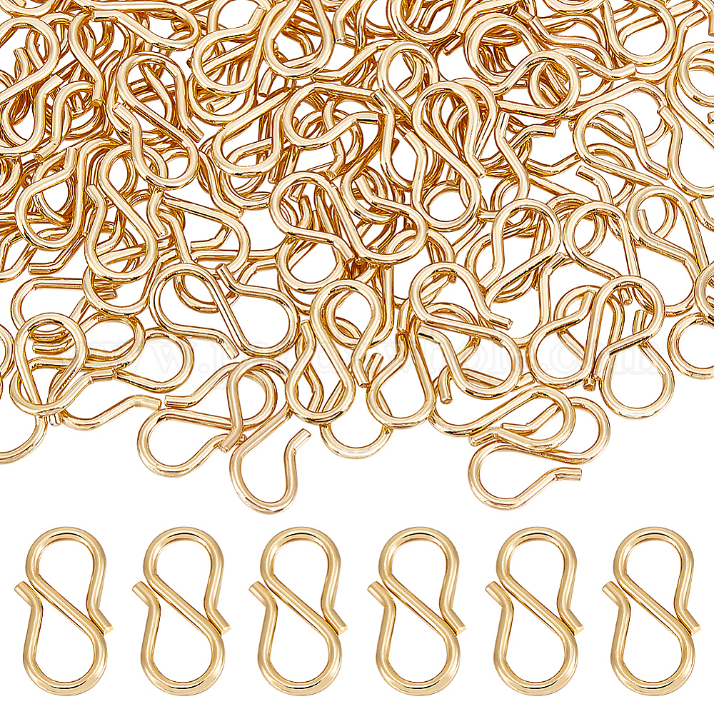 • Настоящее золото 18K 100 шт. 304 S-образные застежки из нержавеющей стали, реальный 18 k позолоченный, 13x7x1 мм