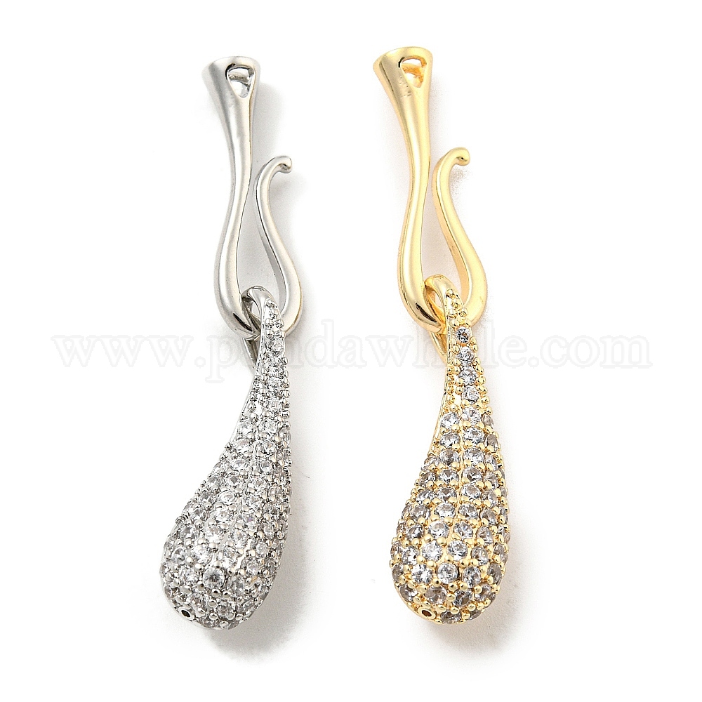 Застежки с S-образным крючком из латуни с микропейвом и прозрачным фианитом, без кадмия, без никеля и без свинца, слеза