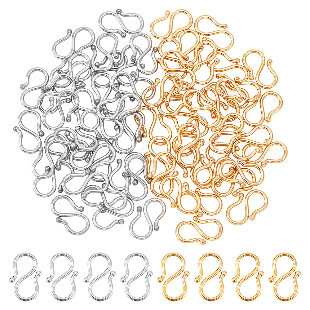 60шт 2 цвета 304 S-образные застежки из нержавеющей стали, для ожерелья, изготовление браслетов