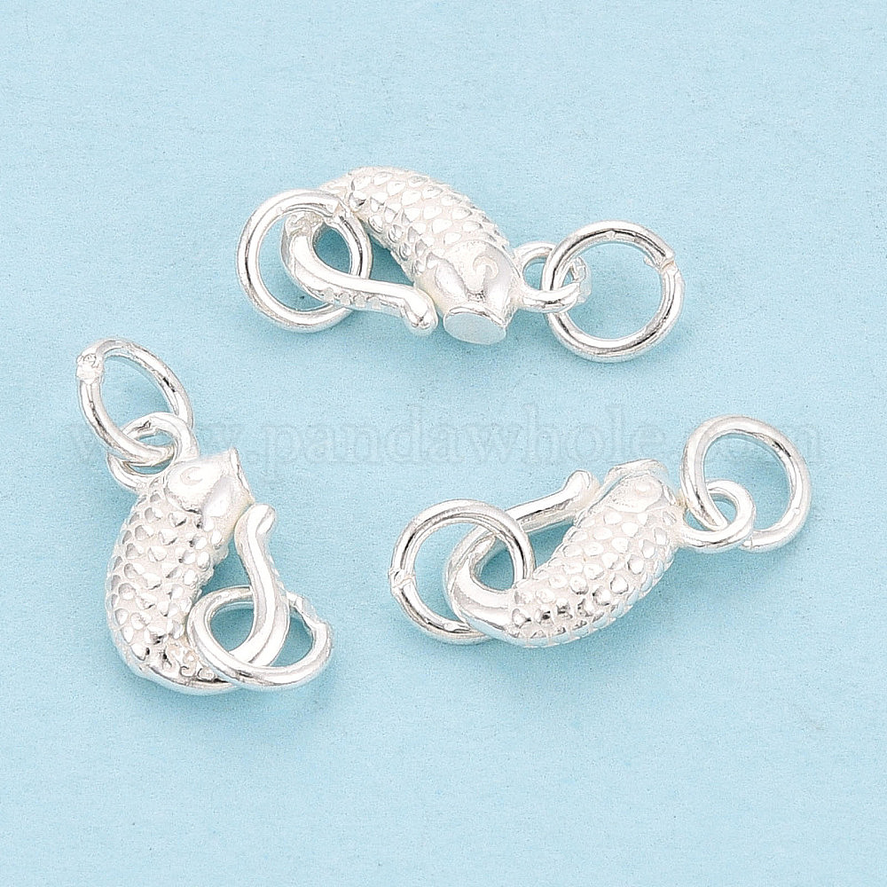• Серебро Текстурированная рыба 925 застежки-крючки из стерлингового серебра с соединительными кольцами, серебряные, 12.5x7x3 мм, Перейти кольцо: 5x0.5 мм, внутренний диаметр: 4 мм
