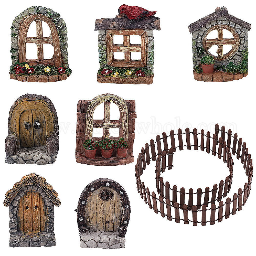 Аксессуары для строительства кукольного домика из смолы, в том числе имитация деревянной двери, окно и садовый забор, для оформления микроландшафта (02F8W4)