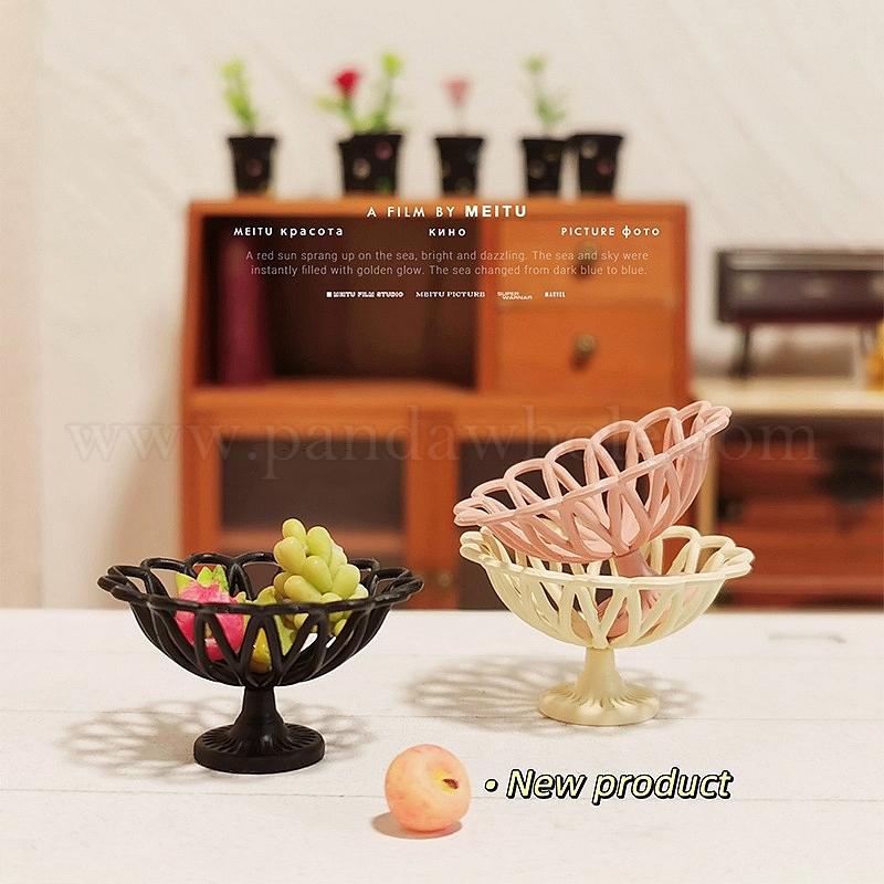 • Черный Модель фруктовой тарелки с высокими ножками из сплава, аксессуары для домашнего кукольного домика с микро-ландшафтом, притворяясь опорными украшениями, чёрные, 33x19 мм
