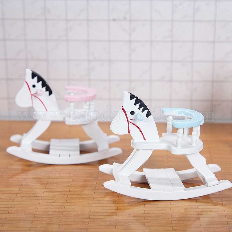 • Голубой Деревянные лошадки-качалки миниатюрные украшения, аксессуары для домашнего кукольного домика с микро-ландшафтом, голубой, 83x36x66 мм