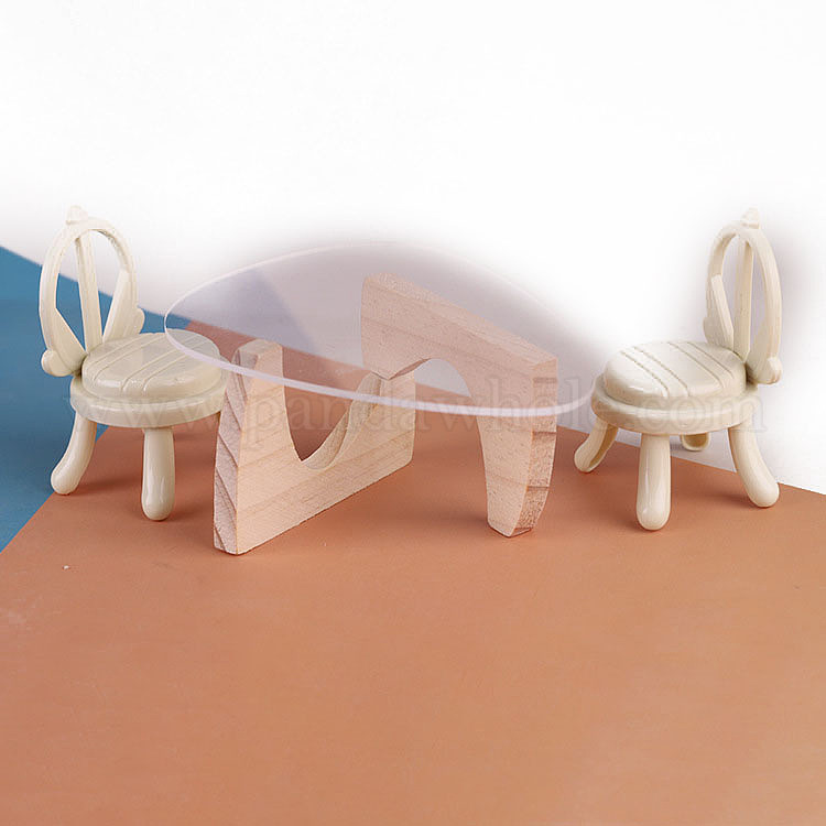 Мини-модель акрилового стола и деревянного стула, аксессуары для кукольного домика с микро-ландшафтом, притворяясь опорными украшениями